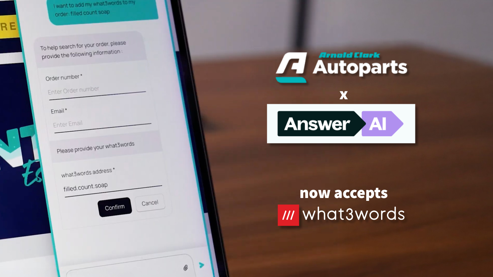 “This is a really great use of the latest AI tech – thanks what3words and AnswerAI for this project to improve our chat feature on Arnold Clark Autoparts’s website.”